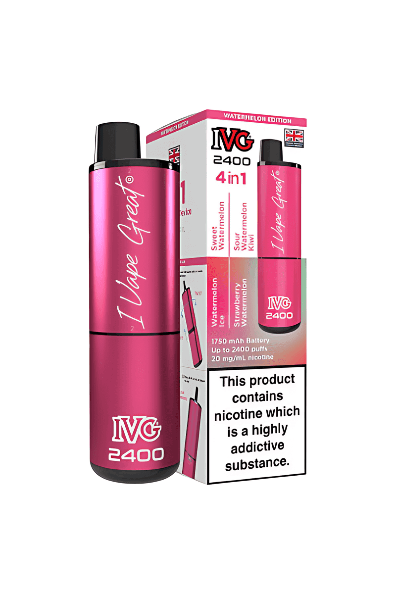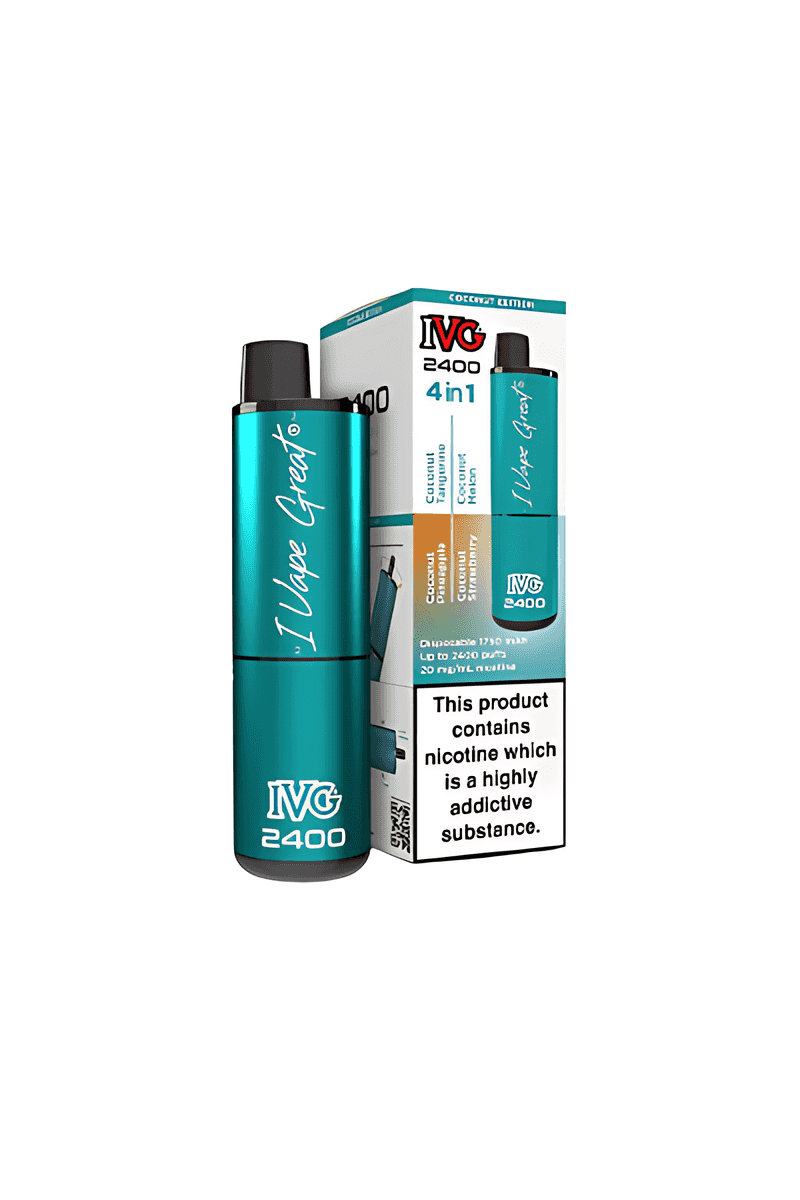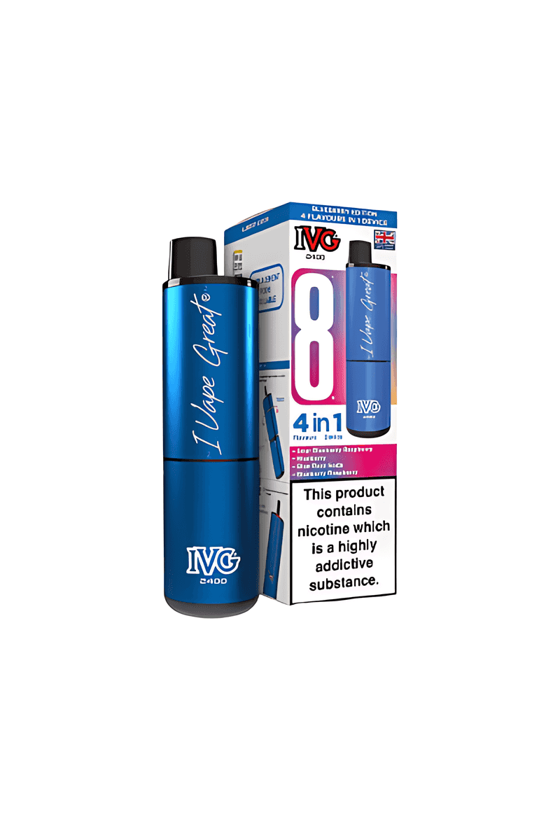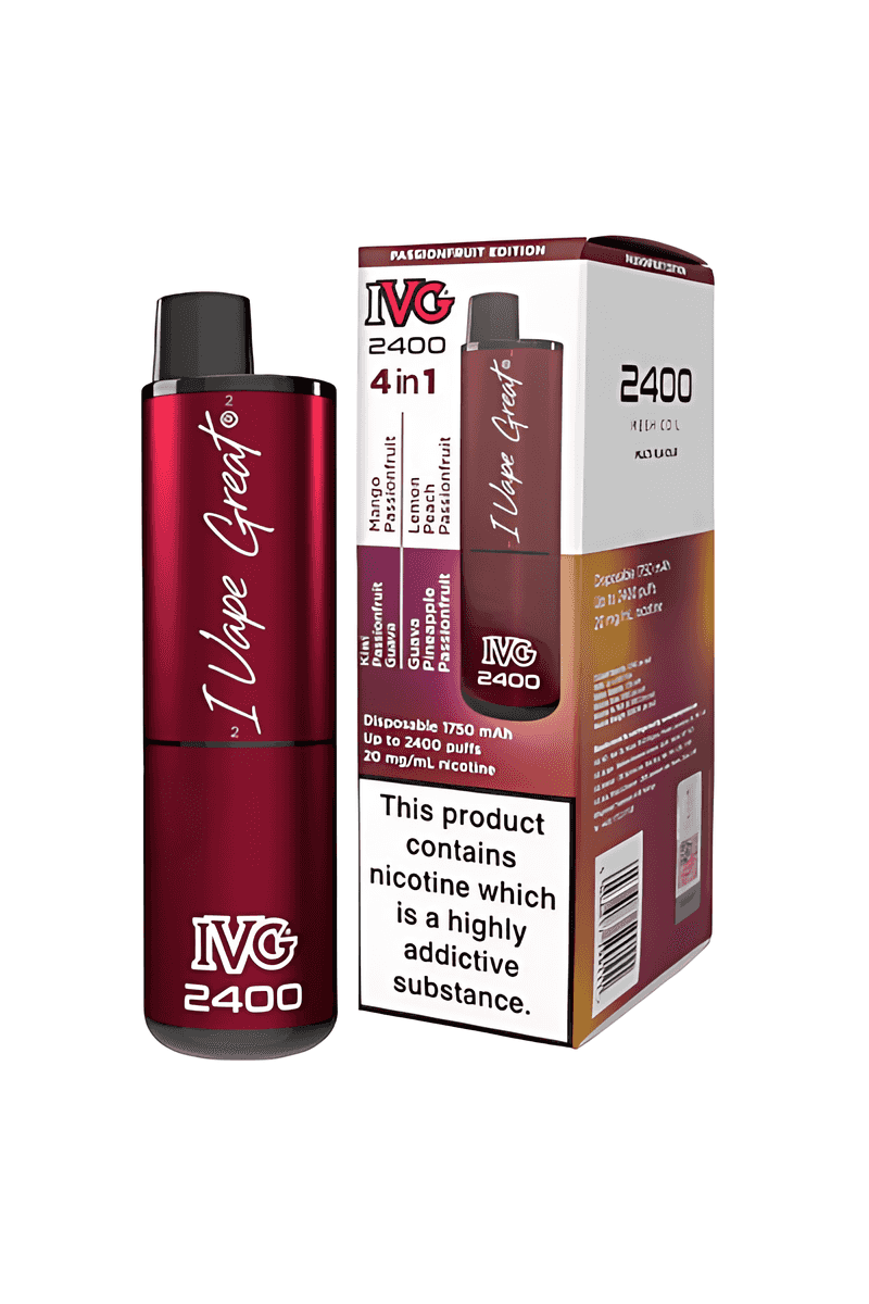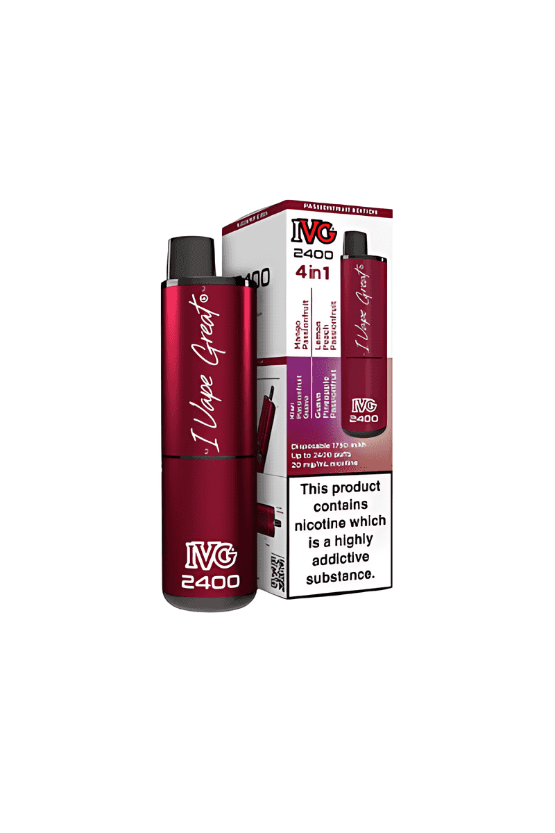 The IVG 2400 Disposable Vape Kit is a game-changing, rechargeable vaping device. It features four mesh coil 2ml pod cartridges filled with 20mg nicotine salt e-liquid, delivering up to approximately 2400 puffs per device and coming in a vast range in IVG 2400 flavours and IVG 2400 4 in 1 with 4 different flavours in one device.