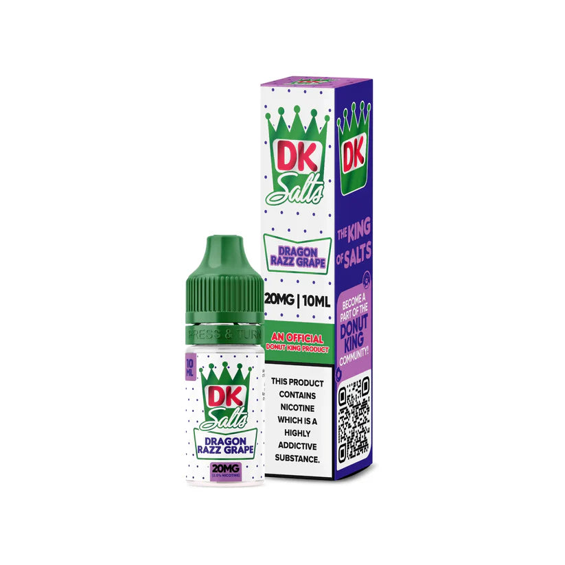 Donut King DK Salt's Dragon Razz Grape is a deliciously delectable blend of exotic dragon fruit, tart raspberry, and juicy grape, taking you on a sweet and tropical voyage with every puff.