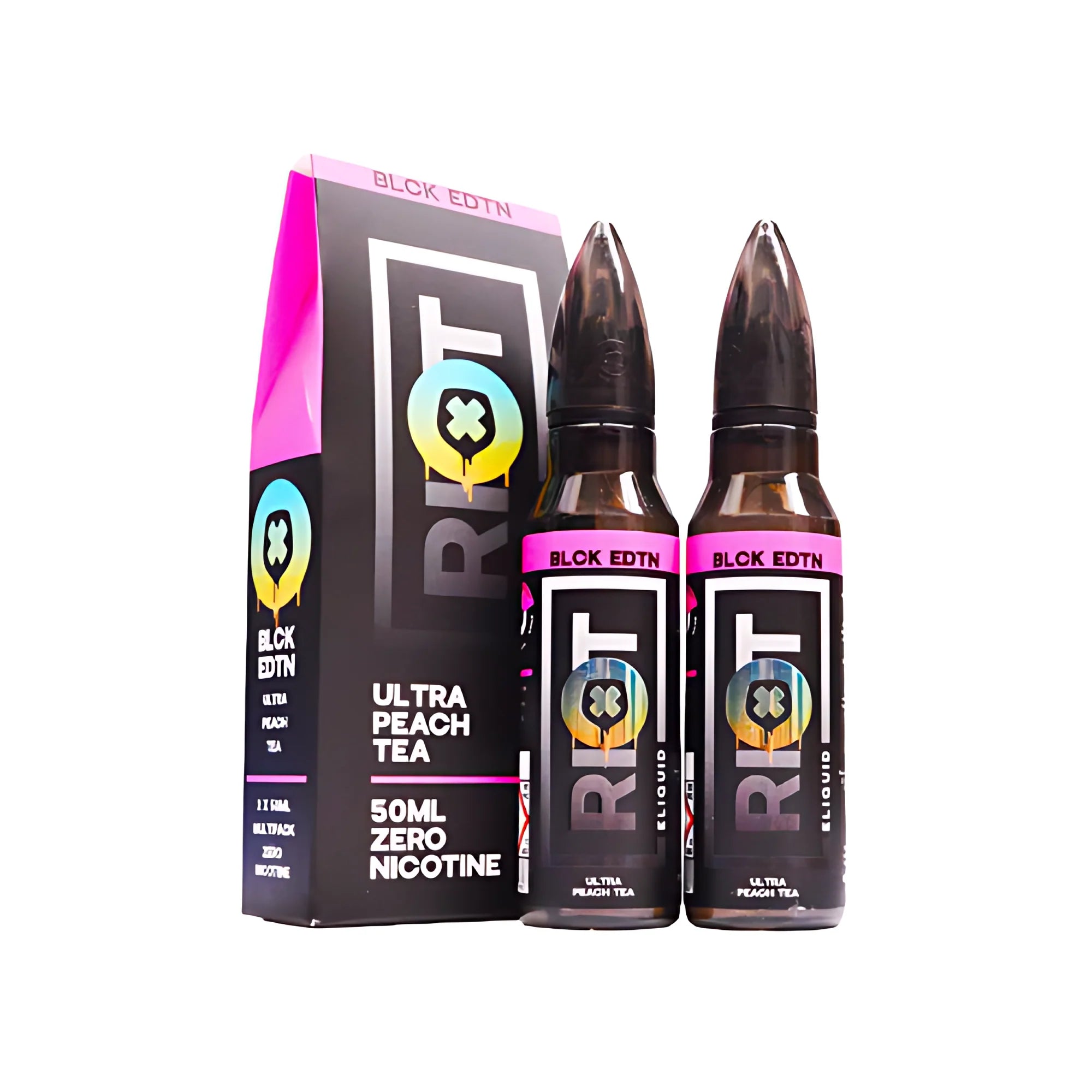 Layered over ice, Riot Squad Ultra Peach Ice Tea 100ml Shortfill offers a delightful combination of delicate peach and aromatic tea aromas. Juicy and soft peach notes blend with delicately scented tea leaves, and the whole thing is finished with a cool finish. Comes in a multipack including two 60ml bottles, each holding 50ml of flavor-infused e-liquid.