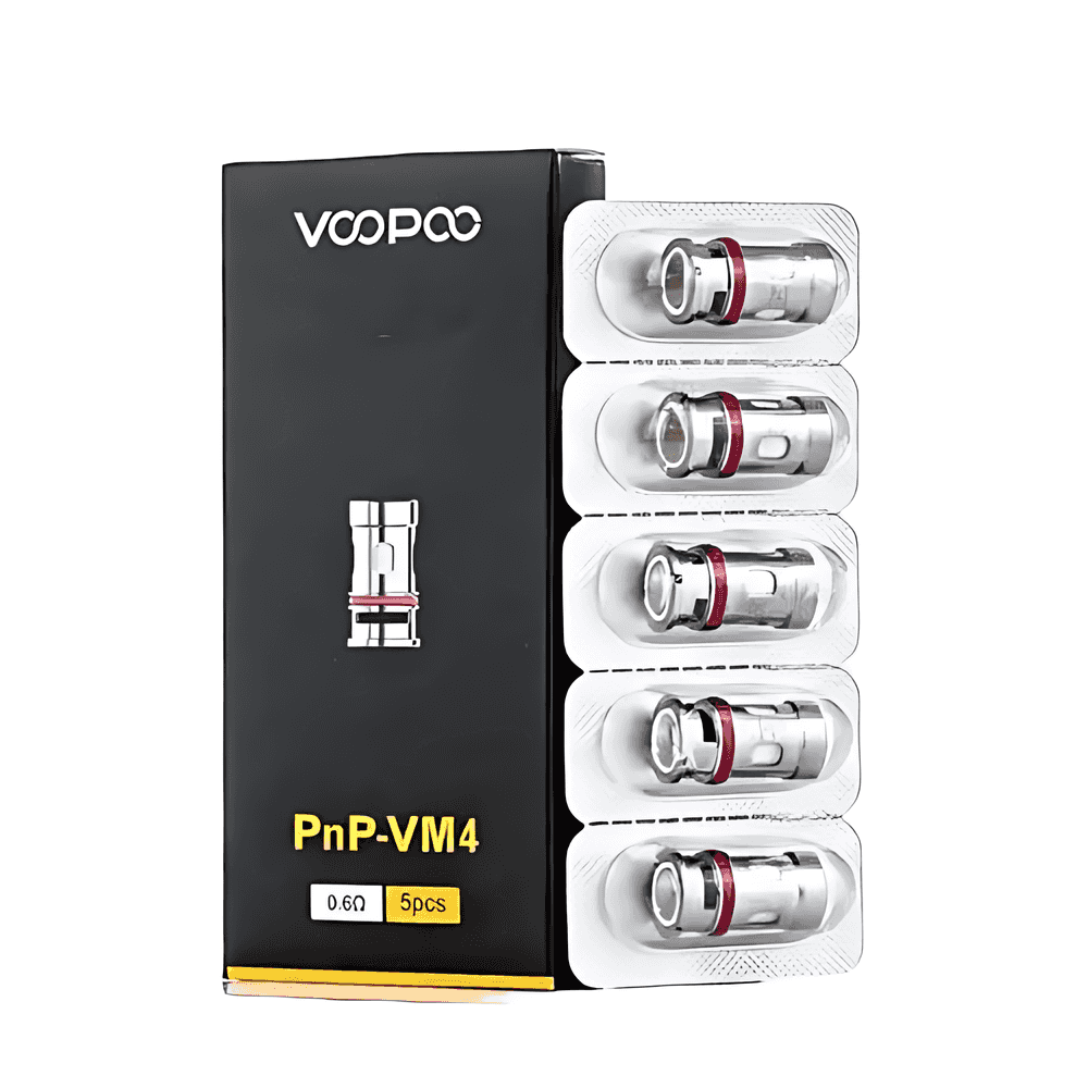 This is a set of five authentic VooPoo PnP-VM4 dual coils, each with a resistance of 0.6 ohm.